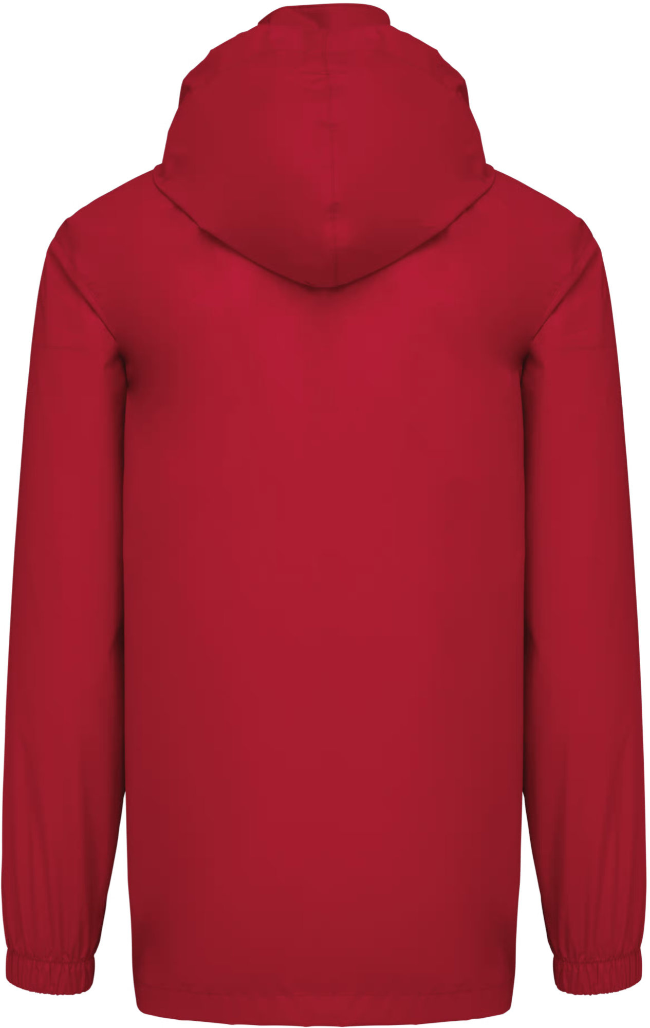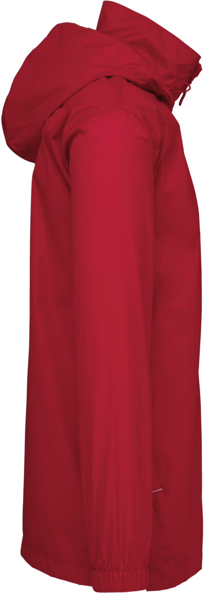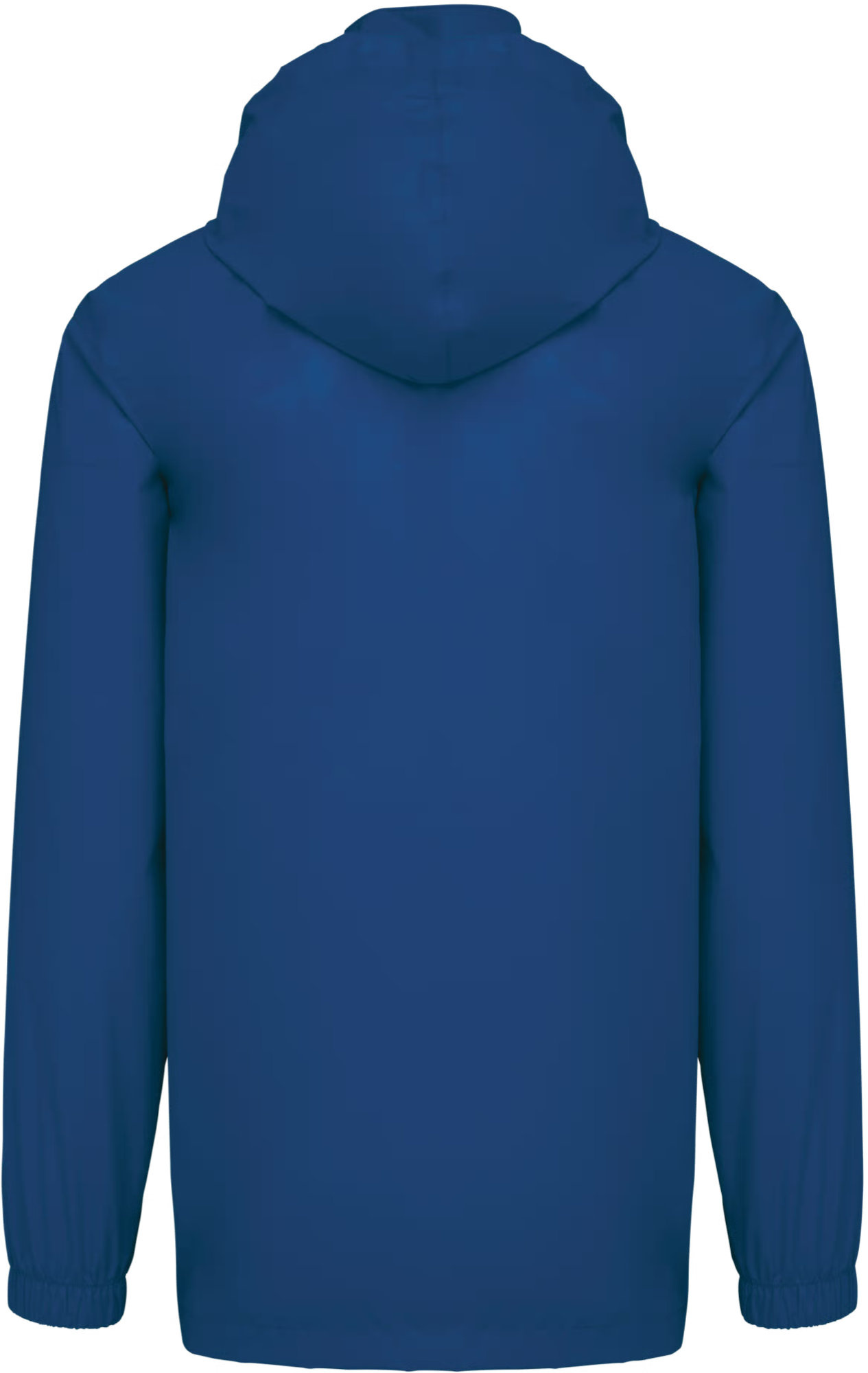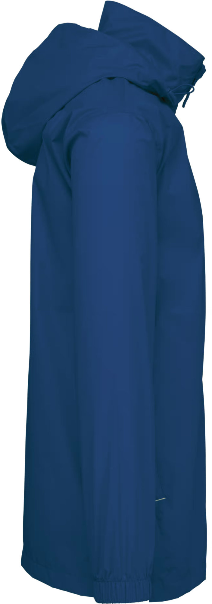 Trotseer ieder weer met de nieuw lichtgewicht, unisex regenjas van Kariban ProAct. Deze eenvoudige, maar moderne regenjas is gemaakt van 100% mat polyester 210T met PU-coating. Deze waterdichte stof van 1500mm weegt slechts 80 gram per vierkante meter zodat de jas je niet verzwaart tijden het sporten in de regen. De jas is voorzien van twee afsluitbare zijzakken en twee binnenzakken, heeft een aanpasbare capuchon met stopkoorden in de kraag en klittenbandsluiting en is voorzien van elastische manchetten zodat er minder snel water je mouwen in loopt.